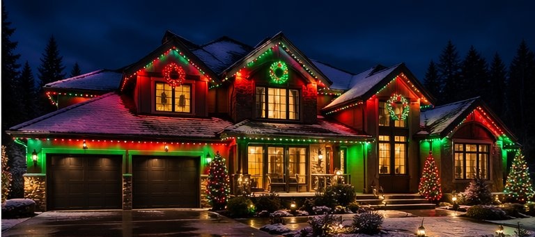 Hardwired roofline LEDs with 16 million colors. App-controlled from your phone. Christmas, Halloween, Seahawks game day — every occasion, every year, forever.